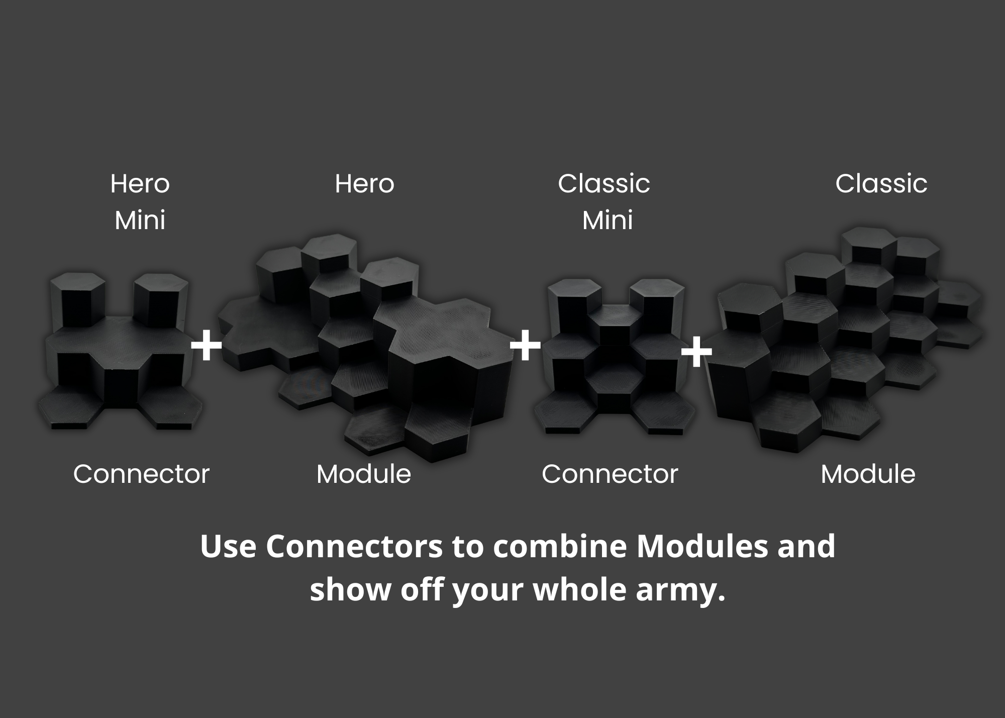 WarSplay is a fully modular system designed for hobbyists. Mix and match different modules and connectors to create a custom, tiered layout that eliminates clutter and puts your whole army on full display.